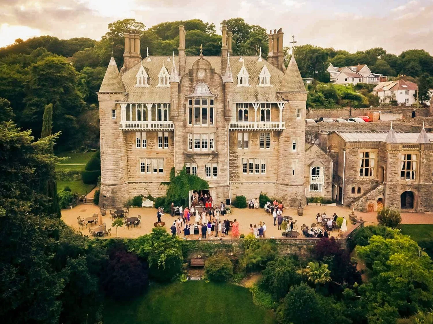 Spring brings soft coastal light and fresh garden colour, creating gentle, flattering portraits. Summer offers long evenings and warm golden-hour light across the Menai Strait. Autumn adds rich tones and texture to the grounds, while winter weddings benefit from candlelit interiors and the château’s atmospheric architecture. Whatever the season, the combination of water, mountains and historic details ensures the venue photographs beautifully year-round.